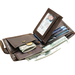 Cartera RFID de piel de vaca auténtica Vintage para hombre, tarjetero antirrobo de primera capa, poliéster, longitud corta, Marant