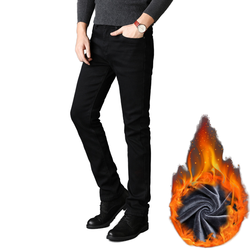 Pantalones vaqueros de estilo coreano con forro polar de pierna recta a la moda para hombre para Otoño/Invierno Diseño elástico informal ajustado