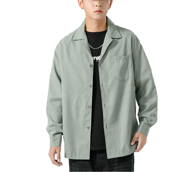 Cárdigan de manga larga de estilo americano para hombre Dengjie, camisa informal con cuello cubano y botones de Nápoles de Color sólido para primavera y otoño