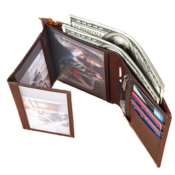 Cartera de piel de vaca para hombre Marant de gama alta, primera capa de cuero genuino, multifuncional, antirrobo, cierre abierto, longitud corta