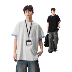 2025 à la mode Style américain à manches courtes hommes haut coupe ample pur coton Style sportif été couleur-bloc T-Shirt pour les Couples