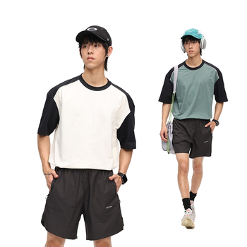 Maglietta 2025 estiva Trendy a maniche a cinque quarti da uomo donna stile americano manica Raglan a blocchi di colore ad asciugatura rapida