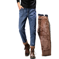 Jeans da uomo alla moda a gamba dritta larghi Casual autunno elasticizzati Slim Fit inverno in pile traspirante in Denim medio solido medio