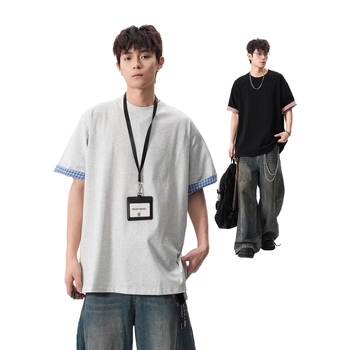 T-shirt 2025 stile americano a manica corta da uomo alla moda ampia in puro cotone stile sportivo estivo Color Block per coppie